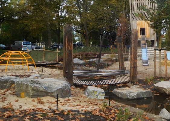 Tien bruggen in Speelpark Blijdag aan de Fizeaustraat in Oost.