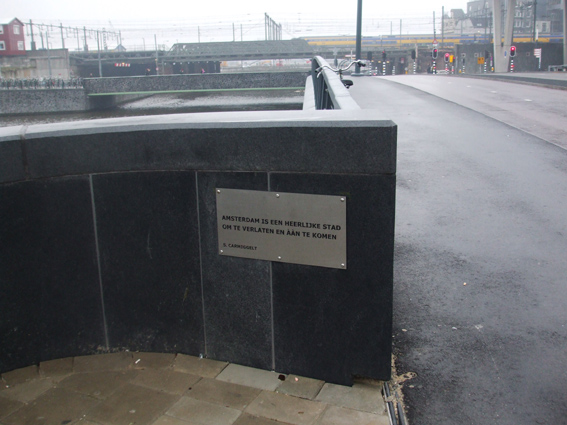 Op een plaquette aan weerszijden van de brug staat een korte ode van Simon Carmiggelt aan de stad Amsterdam met de tekst: