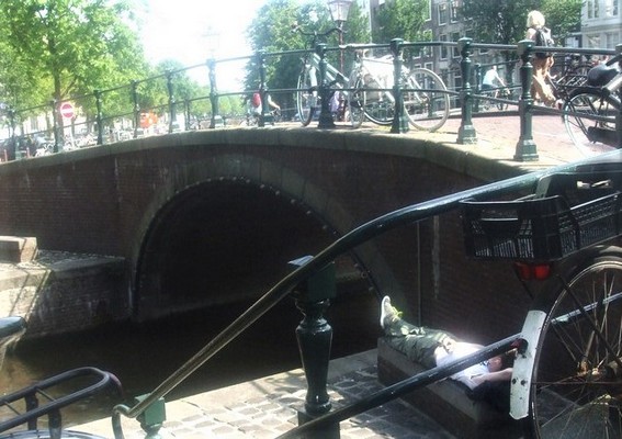 Deze brug bevindt zich dichtbij het voormalige Aalmoezeniersweeshuis aan de Prinsengracht.