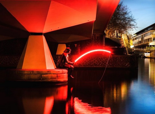 Het beeldje Darth Fisher van Streetart Frankey was te zien tijdens het Amsterdam Light Festival.